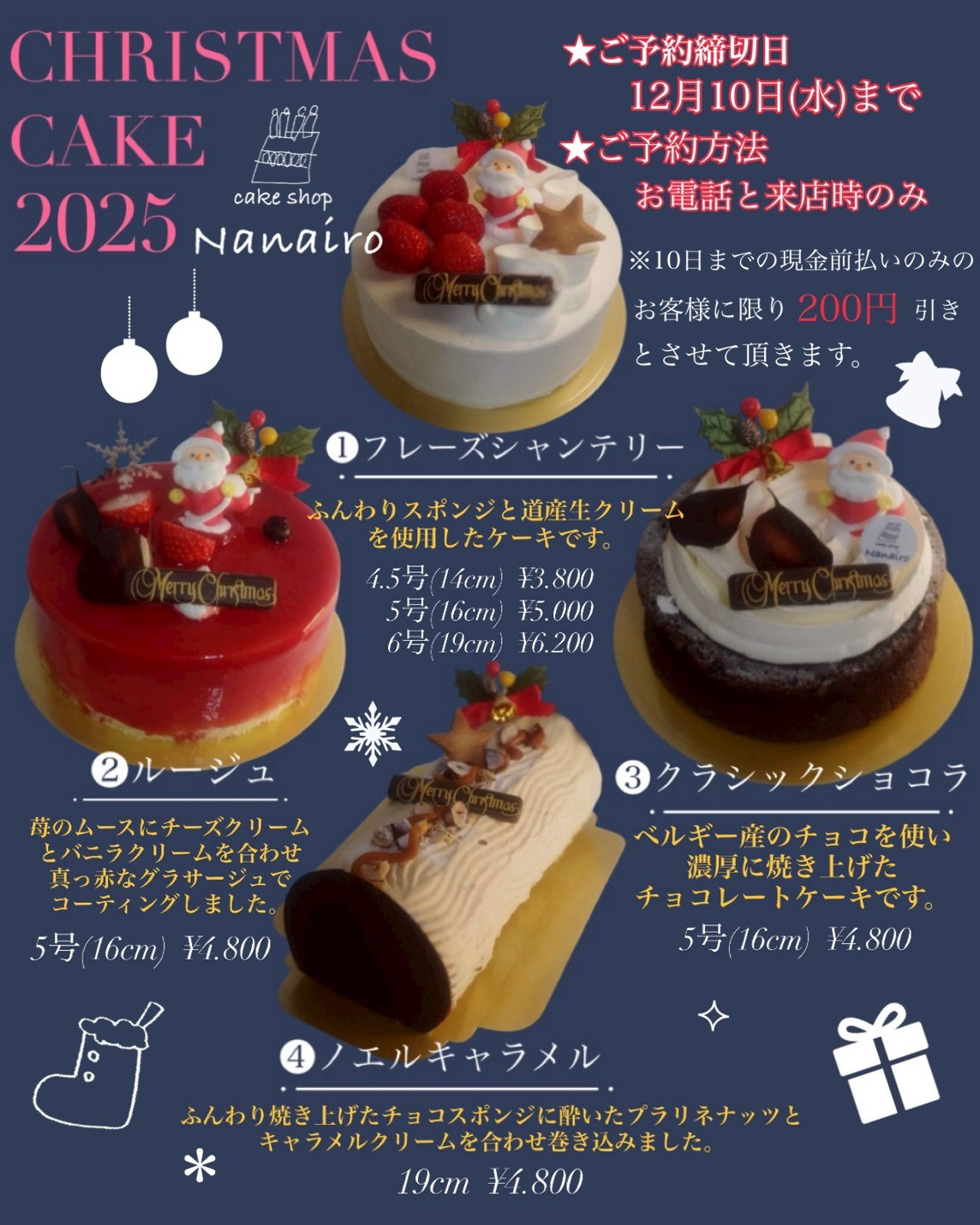 クリスマスケーキご予約始まります。
